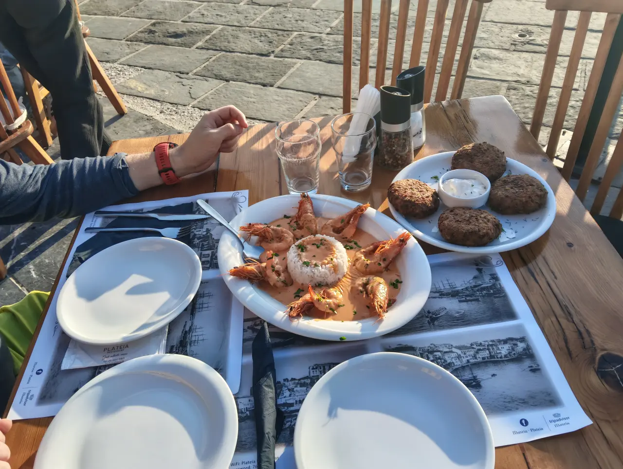 Objednali jsme si jedno hlavní jídlo a jeden předkrm. Byla to pro nás však naprosto sytící kombinace. Ty krevety opravdu stály za to, byly vynikající.