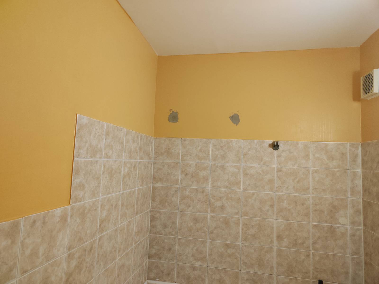 Erika zbrousila záplaty v kouplně a přidala na ně finišku. Až zaschne, můžeme malovat.